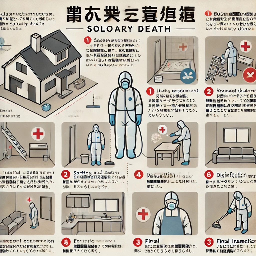 孤独死が発生した物件の特殊清掃は、次のようなプロセスで行われます。