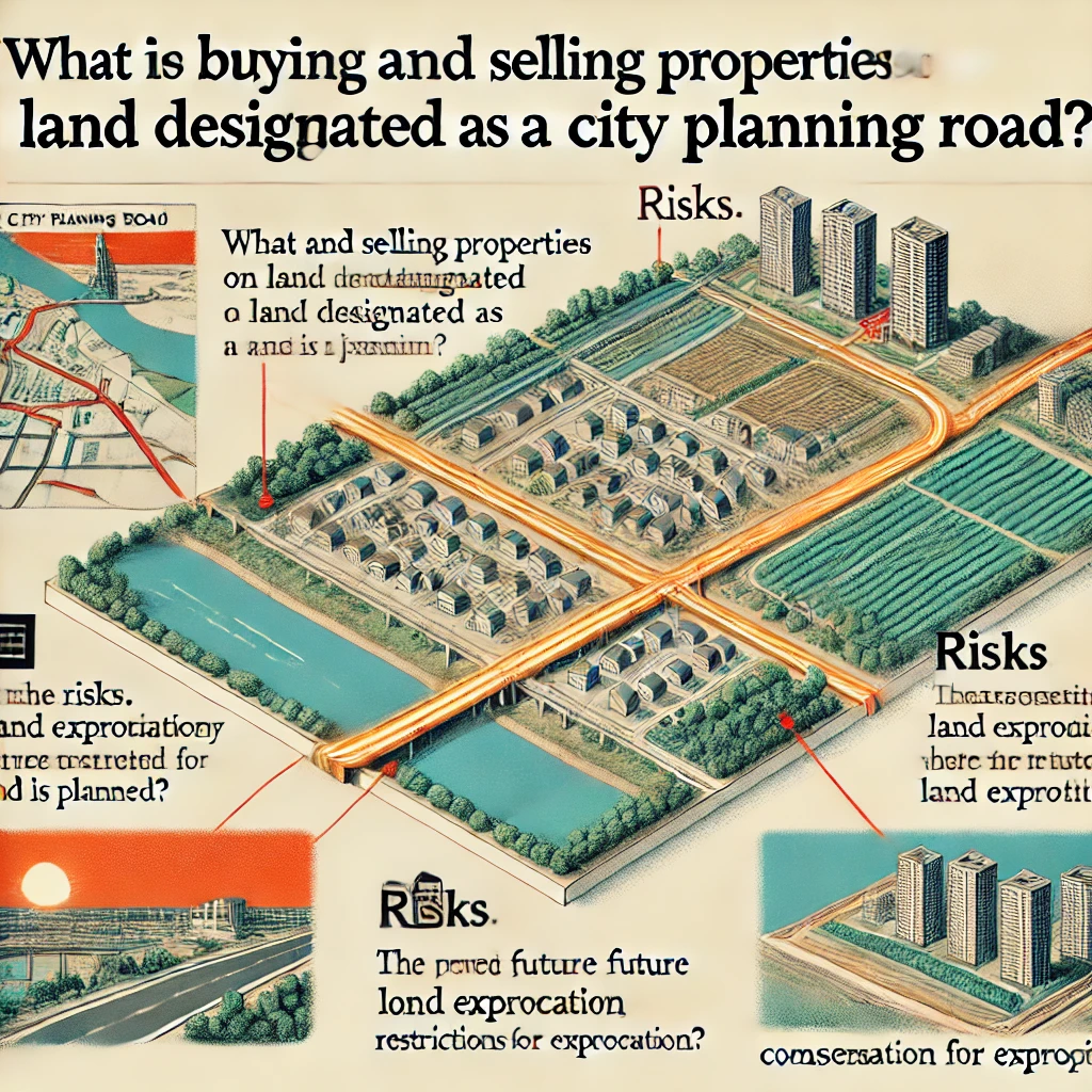 - 将来的な収用リスク 都市計画道路に指定された土地は、計画が進行すると自治体によって買収され、道路整備に利用される可能性があります。これにより、土地の一部または全体が収用されるリスクが存在します。